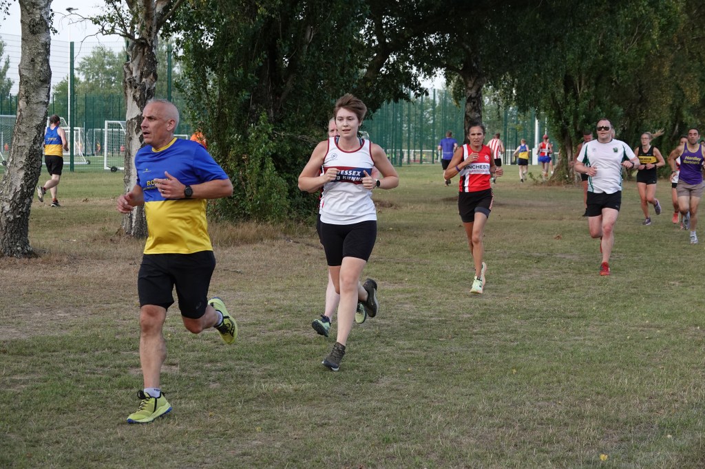 Race number eight of the season and my favourite race – easy to get to and flat, really flat, with the only ‘hill’ being the up slope after we run through a short underpass. Some say it is a little dull but there were plenty of distractions with other sports on the adjacent pitches – softball, cricket nets and Winchester City playing a pre-season friendly.